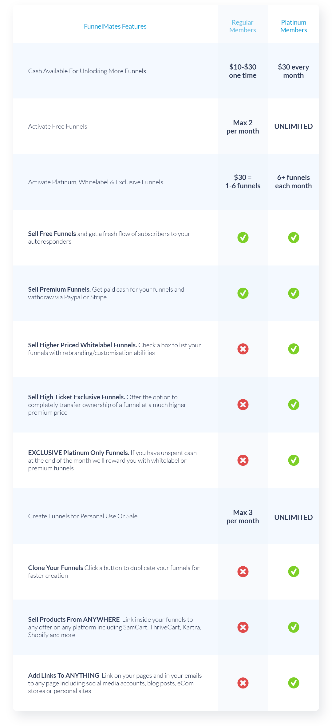 Each month you’ll get a fresh $30 top up to spend on your choice of funnels.